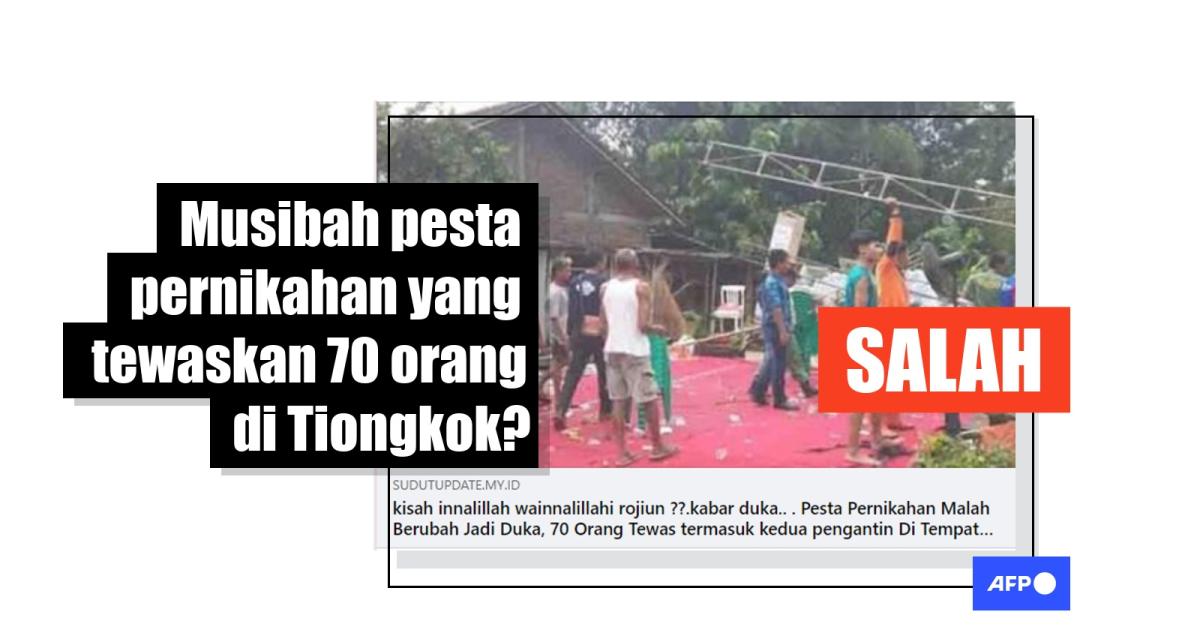 AFP sebelumnya menerbitkan laporan periksa fakta tentang klaim perihal pesta pernikahan mematikan di Longyan, yang memakai foto tenda pernikahan yang ambruk di Provinsi Sulawesi Utara.