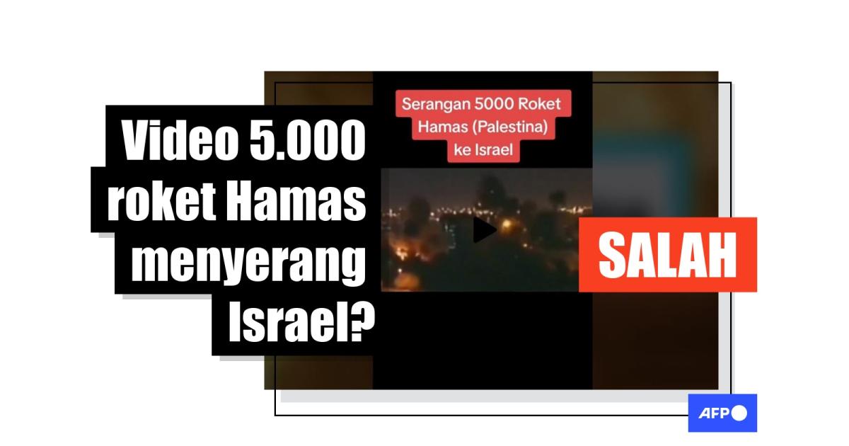 "Serangan 5000 Roket Hamas (Palestina) ke Israel," tulis teks yang tercantum pada sebuah video yang diunggah di TikTok pada tanggal 9 Oktober 2023.