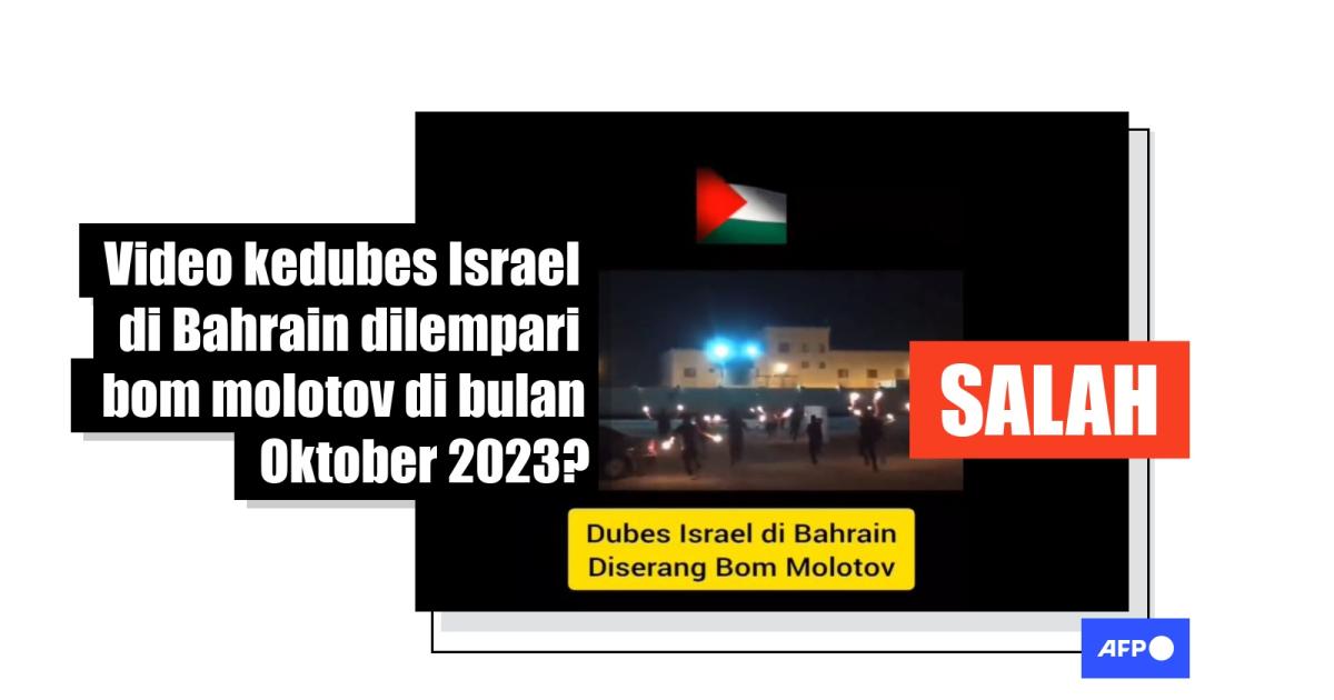 "Warga Bahrain melempar kedutaan Israel di Bahrain dengan bom molotov dan mencoba membakarnya," tulis keterangan unggahan Facebook itu. "Aksi ini sebagai respon bom yang jatuh di Rumah Sakit dan pabrik roti di Gaza oleh serangan Israel."