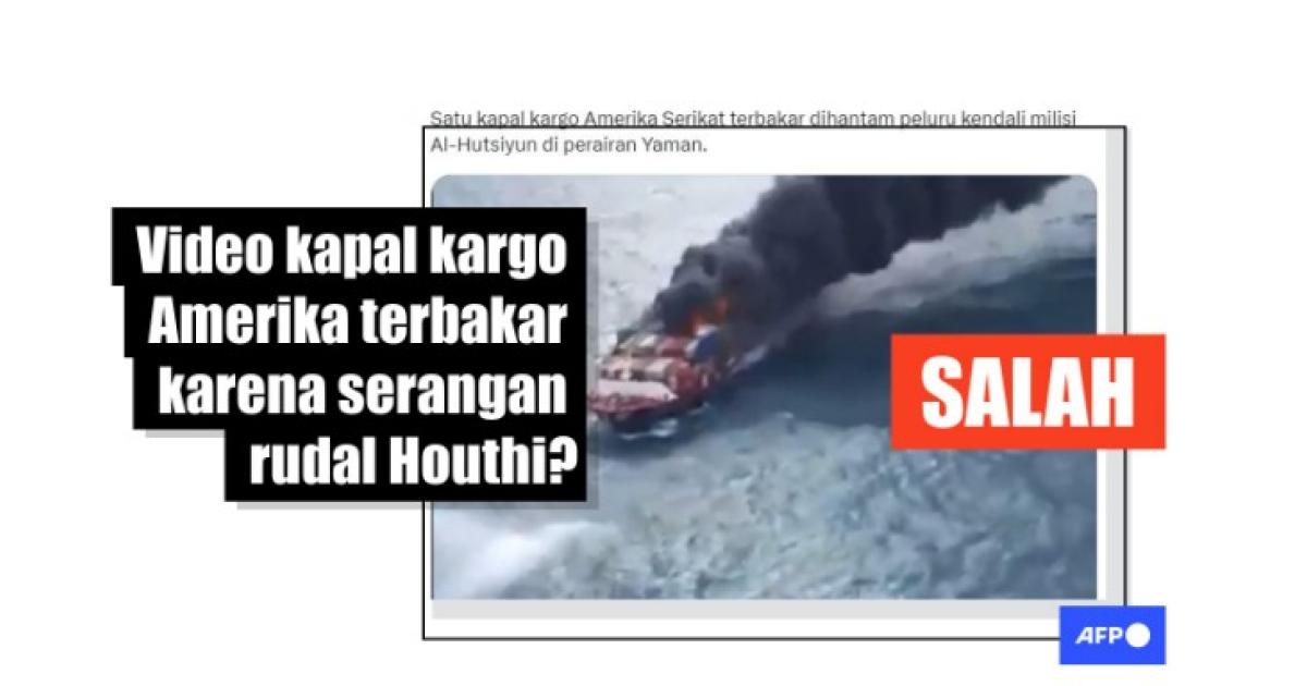 "Satu kapal kargo Amerika Serikat terbakar dihantam peluru kendali milisi Al-Hutsiyun di perairan Yaman," bunyi keterangan postingan video yang dicuitkan di X, dulunya Twitter, pada 17 Januari 2024.