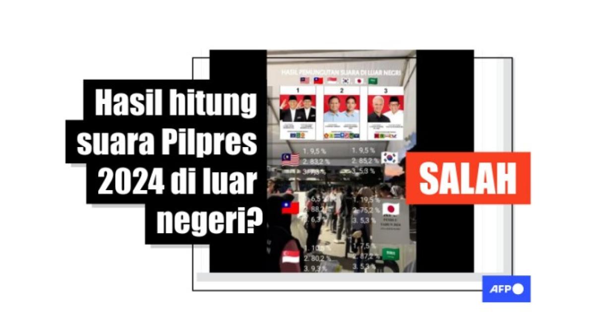 Video itu mengklaim menunjukkan hasil pemungutan suara dari Malaysia, Singapura, Tiongkok, Arab Saudi, Korea Selatan dan Jepang, dan bahwa paslon 02, yakni Prabowo-Gibran, dikatakan meraup antara lebih dari 75 persen dan 88 persen surat suara.