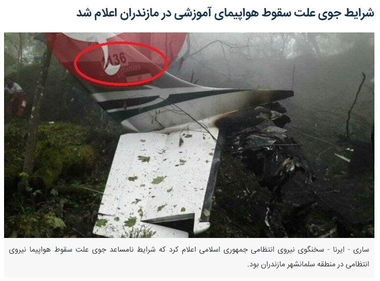 Foto serupa juga digunakan dalam sebuah laporan yang diterbitkan Kantor Berita Iran IRNA tentang pesawat latihan polisi yang jatuh karena cuaca buruk di Mazandaran, sebuah provinsi di Iran bagian utara (tautan arsip).