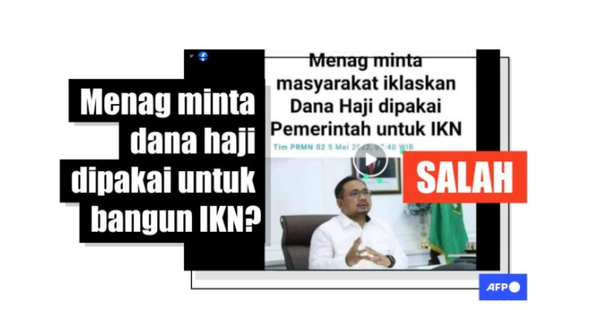 Unggahan itu disertai foto yang mirip tangkapan layar laporan media yang memperlihatkan Menteri Agama Yaqut Cholil Qoumas dan judul berita: "Menag minta masyarakat iklaskan Dana Haji dipakai Pemerintah untuk IKN".