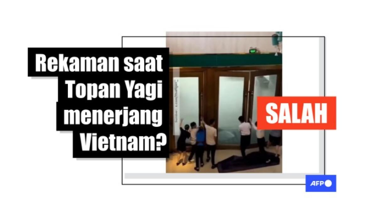 "Pekerja hotel di Vietnam terlihat berusaha keras menahan pintu agar tidak terbuka diterjang badai," tulis keterangan video yang diunggah di Instagram pada tanggal 10 September 2024.