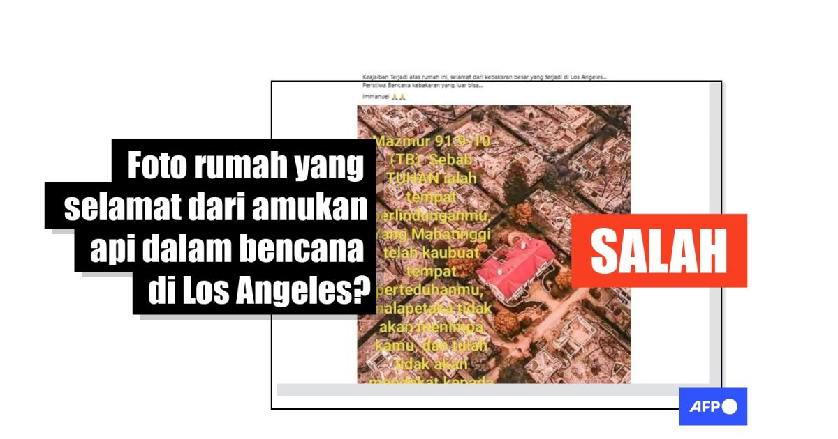 Meski ada beberapa laporan tentang rumah-rumah yang selamat dari kebakaran Los Angeles, AFP tidak menemukan laporan rumah selamat yang tampak seperti foto di dalam postingan salah di media sosial (tautan arsip di sini, di sini dan di sini).