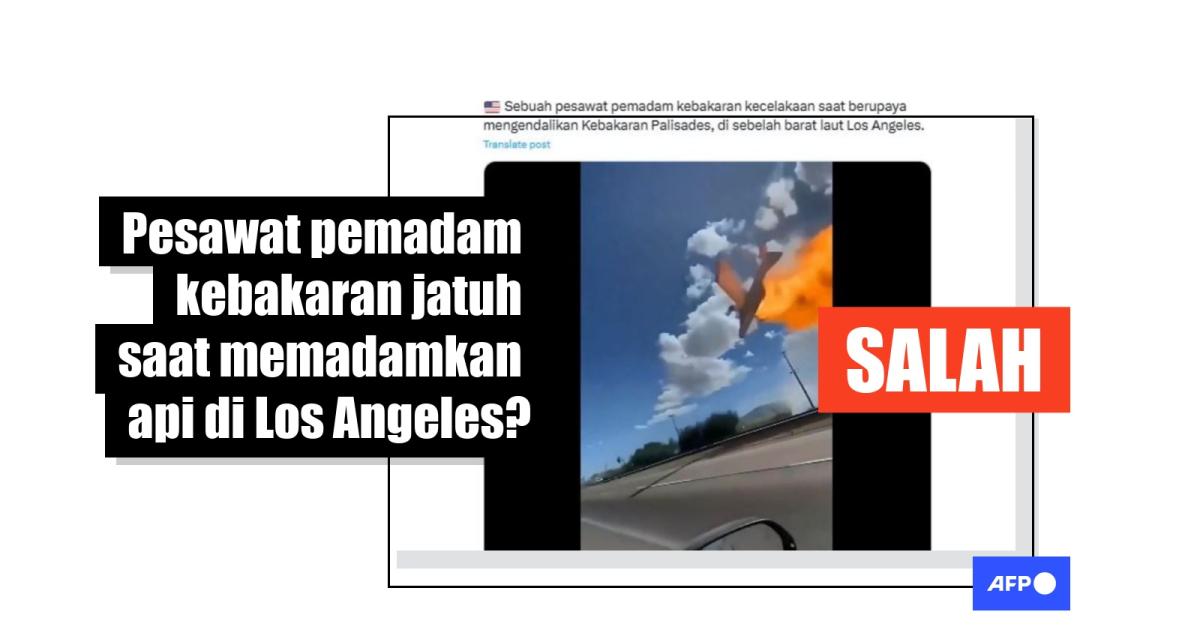 "Sebuah pesawat pemadam kebakaran kecelakaan saat berupaya mengendalikan Kebakaran Palisades, di sebelah barat laut Los Angeles," tulis keterangan dalam postingan X yang diunggah ke pada 11 Januari 2025.