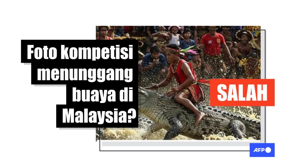 Postingan itu membagikan tiga gambar yang seolah menunjukkan orang-orang sedang berlomba menunggangi buaya.