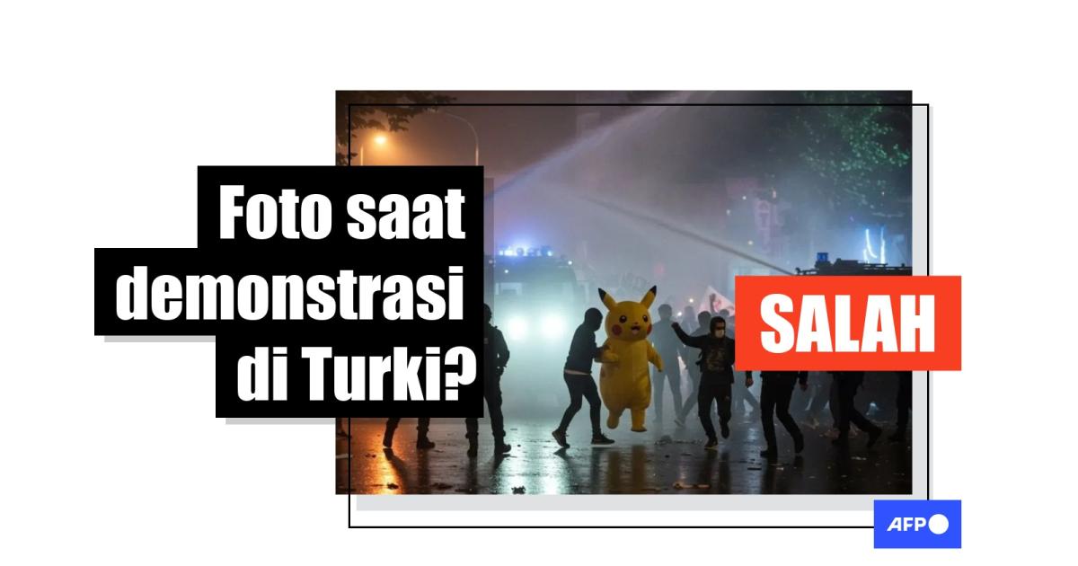 Foto hasil buatan AI yang menunjukkan pendemo di Turki dalam kostum Pikachu viral di media sosial
