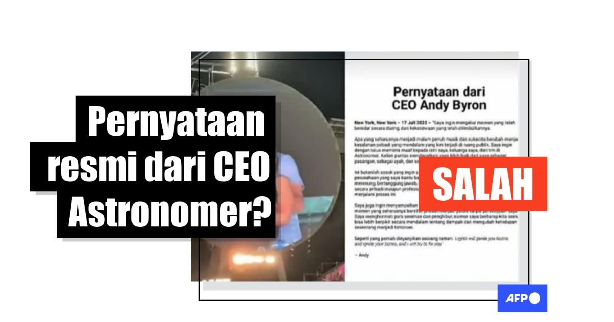Dalam surat yang diberi judul "Pernyataan dari CEO Andy Byron" itu tertulis juga ucapan permintaan maaf kepada istri, keluarga dan tim Astronomer, yang berbunyi: "Saya juga ingin menyampaikan betapa mengganggunya kenyataan bahwa momen yang seharusnya bersifat pribadi menjadi publik tanpa persetujuan saya."