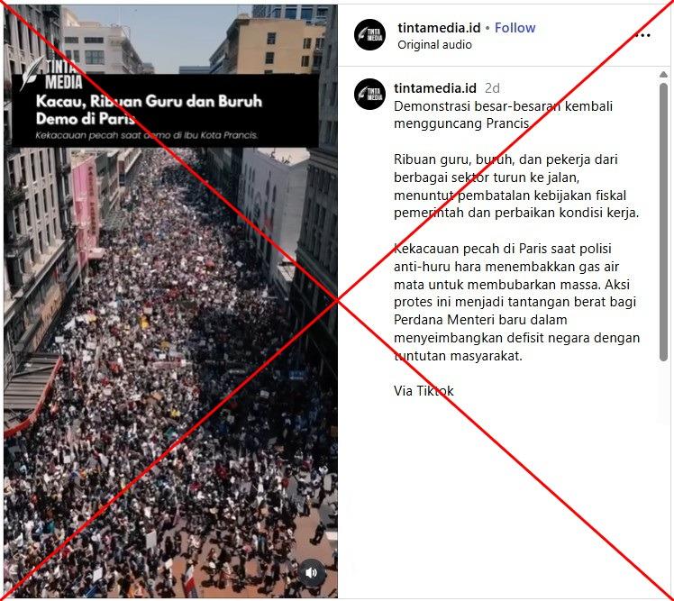 "Kacau, Ribuan Guru dan Buruh Demo di Paris," tulis postingan Instagram yang dibagikan pada 20 September 2025.
