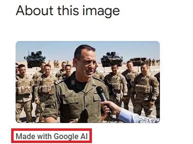 Pencarian gambar terbalik menggunakan potongan video menemukan label "dibuat menggunakan Google AI".