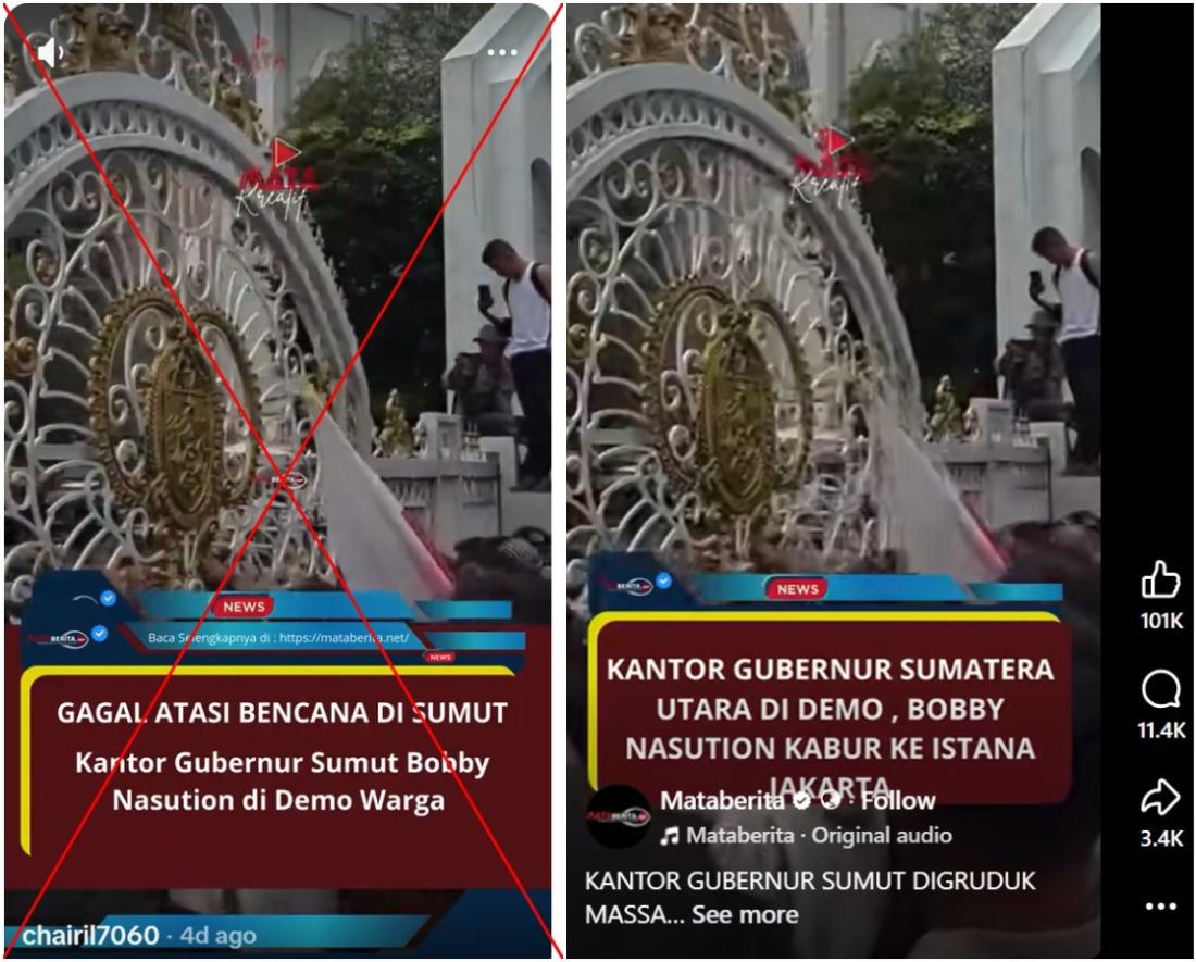 Seiring adanya desakan agar pemerintah bertindak lebih cepat dalam penanganan pasca-bencana di Sumatra, sebuah video lama beredar di media sosial dengan klaim salah bahwa massa berunjuk rasa di depan kantor Gubernur Sumatra Utara, Bobby Nasution, karena ia dianggap gagal dalam penanganan bencana di wilayah kerjanya. Faktanya, video itu memperlihatkan warga yang mendesak pemerintah Sumut menutup sebuah perusahaan pulp yang mereka anggap merusak lingkungan.