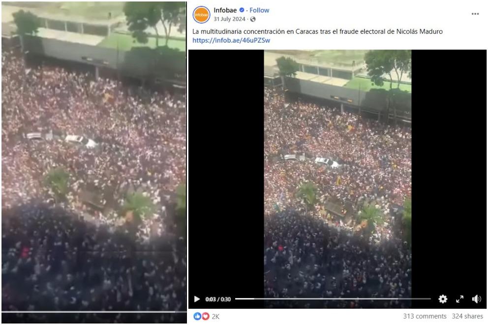 Video dari Infobae dibagikan pada pada tanggal 31 Juli 2024, dengan keterangan yang menyatakan bahwa rekaman itu memperlihatkan protes besar di Caracas setelah "penipuan pemilu" oleh Maduro.