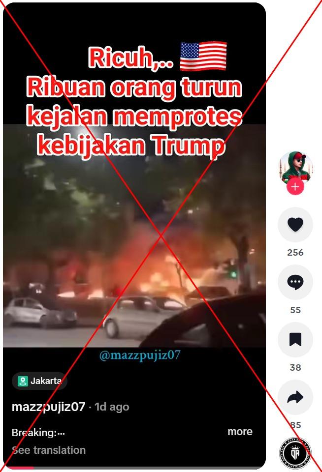 "Ricuh. Ribuan orang turun ke jalan memprotes kebijakan Presiden AS Donald Trump," tulis keterangan video TikTok yang diunggah pada 14 Januari 2026.
