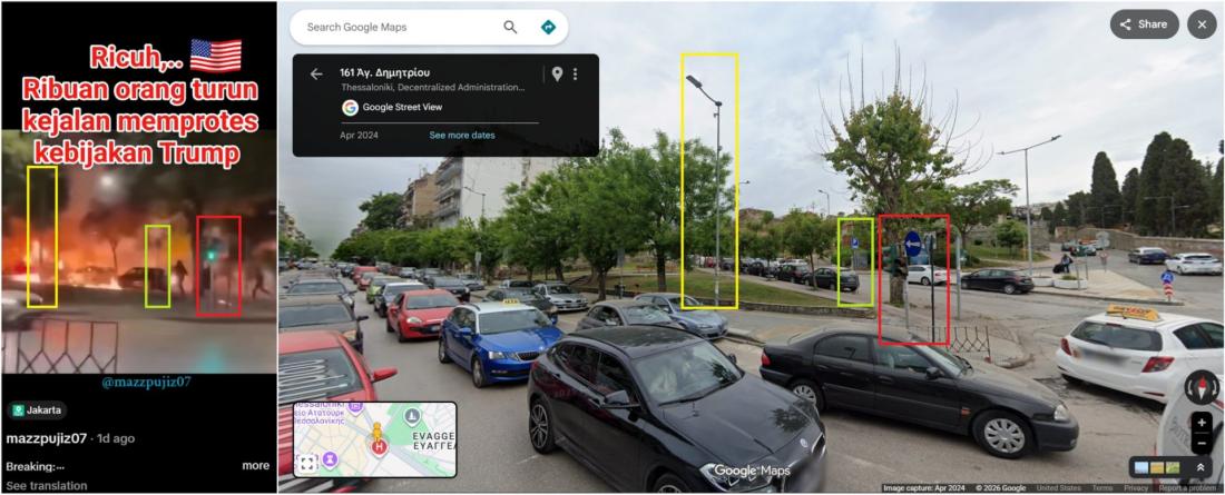 Pencarian gambar terbalik menemukan bahwa video itu pernah diunggah di Instagram pada tanggal 2 November 2025 oleh media Yunani Ta Nae (tautan arsip).