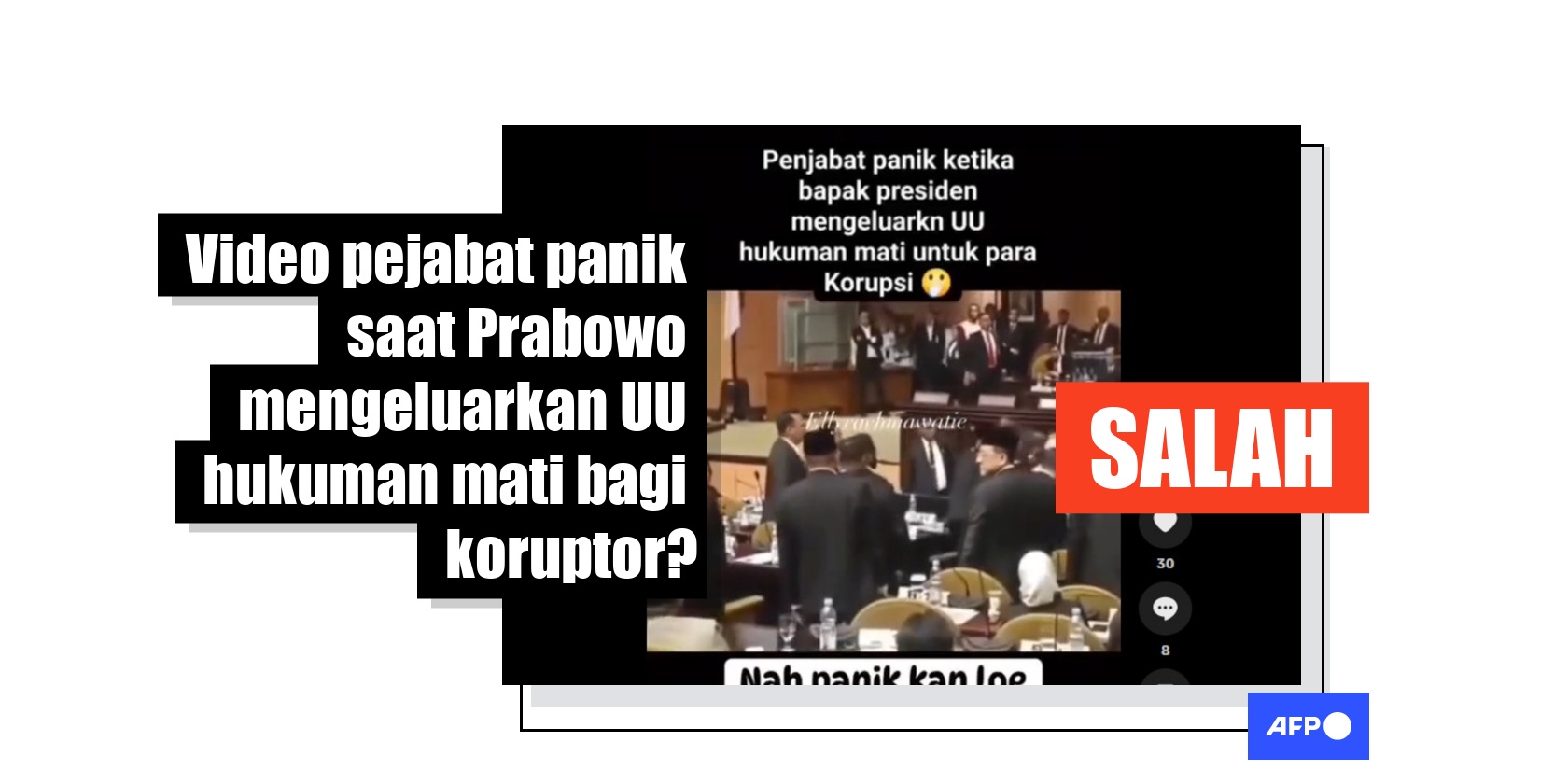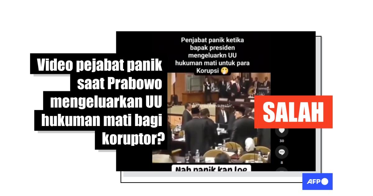 Belakangan ini beredar klaim salah yang menyebut bahwa Presiden Prabowo Subianto telah mengeluarkan Undang-Undang (UU) hukuman mati bagi koruptor. Sebuah video yang dibagikan pada postingan salah tersebut diklaim menunjukkan para pejabat yang panik saat mendengar keputusan Prabowo itu. Faktanya, dua klip pada video tersebut adalah rekaman lama yang diambil saat terjadi perdebatan dalam sidang Dewan Perwakilan Daerah (DPD) dan saat rapat Dewan Perwakilan Rakyat (DPR). Meskipun UU Tindak Pidana Korupsi (Tipikor) memungkinkan hakim menjatuhkan hukuman mati bagi koruptor dalam keadaan tertentu, namun hingga kini belum pernah ada pelaku penyelewengan yang dihukum mati.