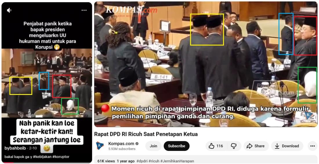 Klip pertama pernah diunggah oleh Kompas TV pada 1 Oktober 2024 dalam laporan tentang kericuhan saat rapat DPD, saat itu para anggota mengkritik mekanisme pemilihan ketua DPD (tautan arsip).