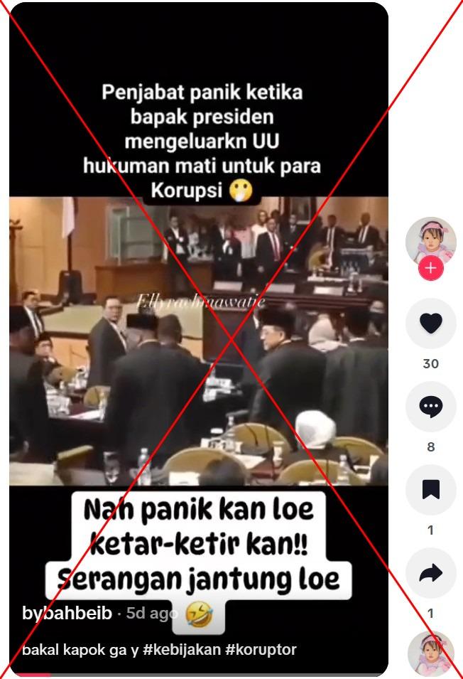 Video tidak menunjukkan Presiden Prabowo mengeluarkan UU hukuman mati bagi koruptor