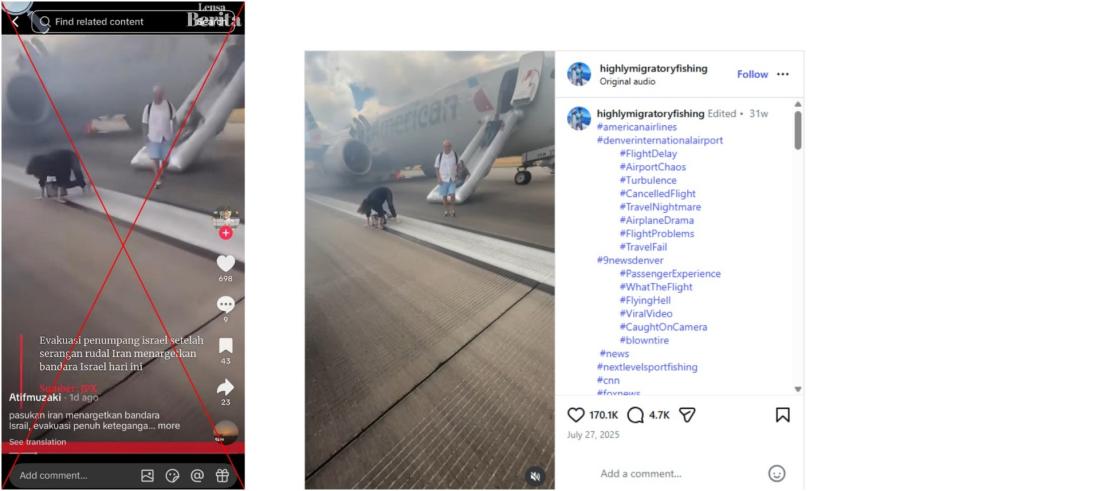 Video menunjukkan evakuasi penumpang pesawat di Amerika Serikat, bukan dampak serangan Iran ke Israel