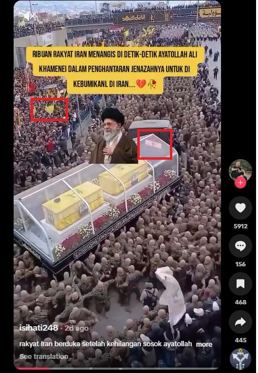 Video menunjukkan prosesi pemakaman petinggi Hizbullah, bukan pemimpin tertinggi Iran