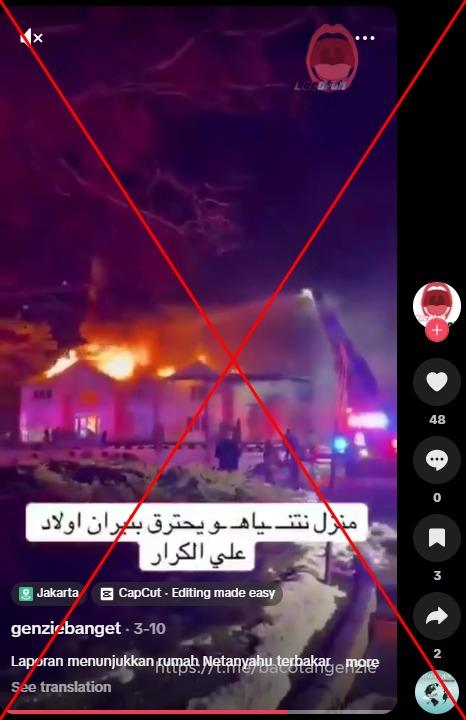 Video itu memperlihatkan sebuah rumah yang dilalap si jago merah. Postingan lainnya di Facebook dan TikTok juga menyertakan foto saudara laki-laki Benjamin Netanyahu, Iddo.