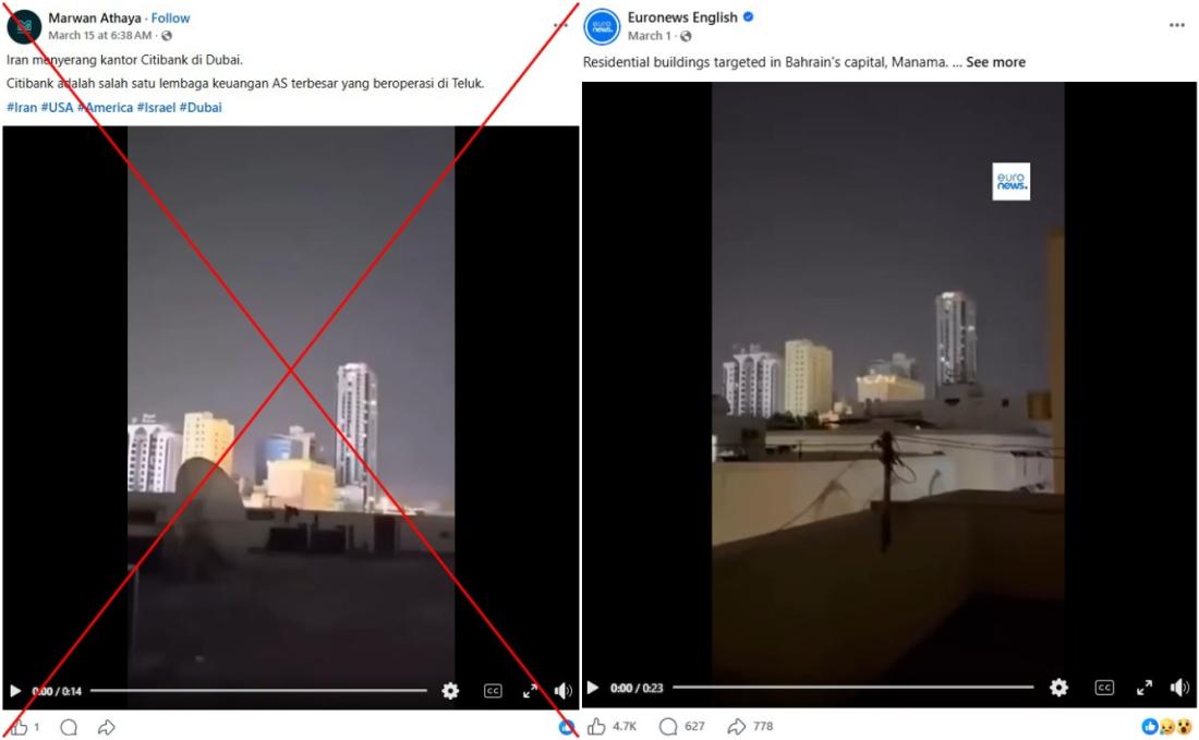 Ini video serangan Iran di Bahrain, bukan kantor Citibank di Dubai