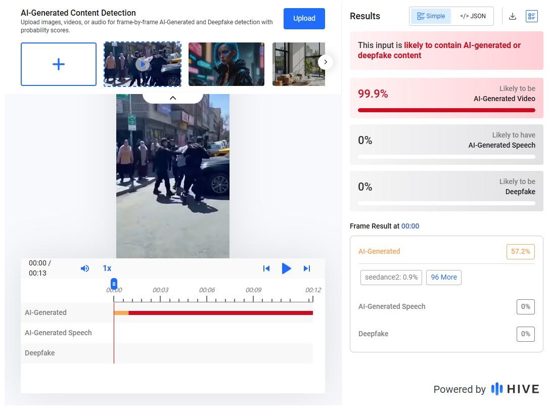 Kemudian, analisis video menggunakan alat deteksi AI, Hive Moderation, memperlihatkan bahwa kemungkinan besar rekaman tersebut merupakan hasil rekaan.