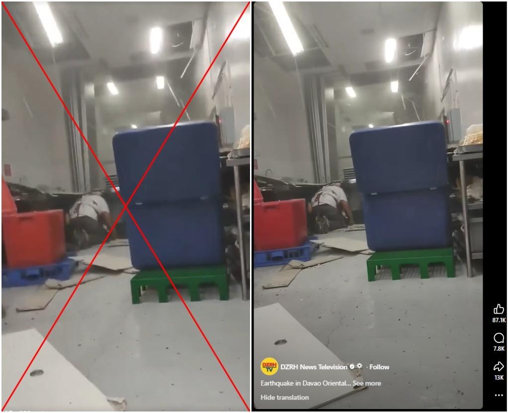 Keterangan video yang diunggah DZRH News Television berbunyi: "Gempa bumi di Davao Oriental. Gempa bumi berkekuatan 7,5–7,6 magnitudo mengguncang sebagian wilayah Davao Oriental pada Jumat pagi, 10 Oktober."