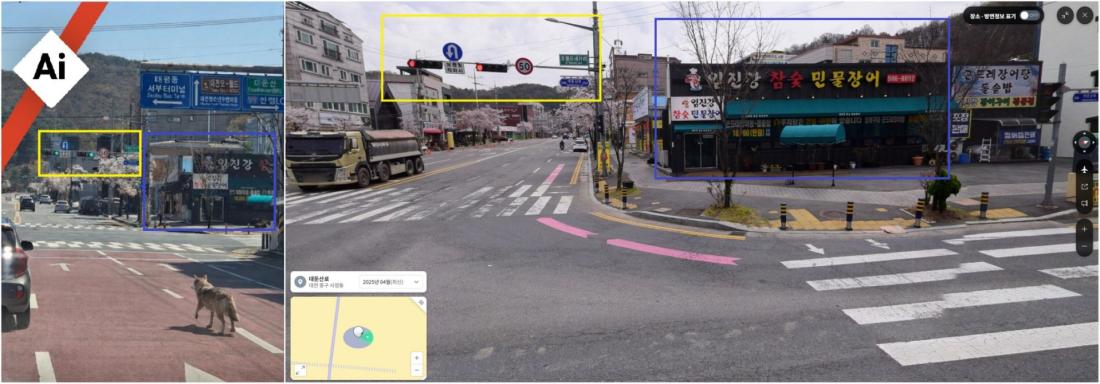 Hasilnya, tampilan jalan yang ditunjukkan aplikasi Naver Maps cocok dengan foto yang beredar di postingan salah. Misalnya, tampilan Naver Maps dan foto yang beredar menampilkan restoran belut bakar yang sama di depan zebra cross.