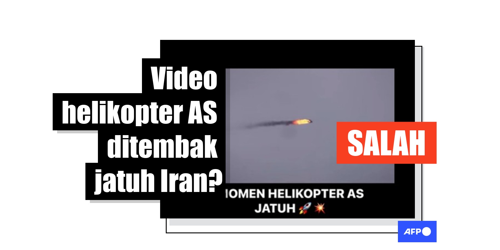 Sebelumnya, AFP telah menyanggah misinformasi lain yang menyalahgunakan rekaman helikopter yang ditembak jatuh di Suriah tersebut.