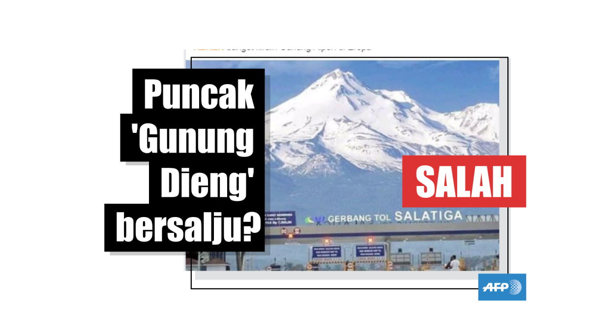 Gunung yang terlihat di belakang gerbang tol itu sejatinya adalah Gunung Merbabu, bukan “Gunung Dieng” seperti yang diklaim di unggahan yang menyesatkan.