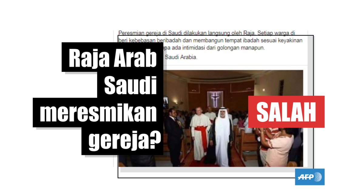 Unggahan yang diunggah pada tanggal 20 September 2019 dan telah dibagikan lebih dari 3.300 kali di Facebook memuat dua gambar: foto pertama menunjukkan seorang pria yang mengenakan jubah dan serban tradisional Arab berjalan di dalam gereja dengan beberapa pendeta Kristen sedangkan foto yang kedua menunjukkan seorang pendeta Kristen dan jemaatnya.