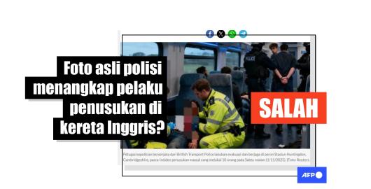 Gambar Kecerdasan buatan Diterbitkan pada 17/11/2025 Foto 'penangkapan pelaku penusukan di kereta Inggris' ini buatan AI