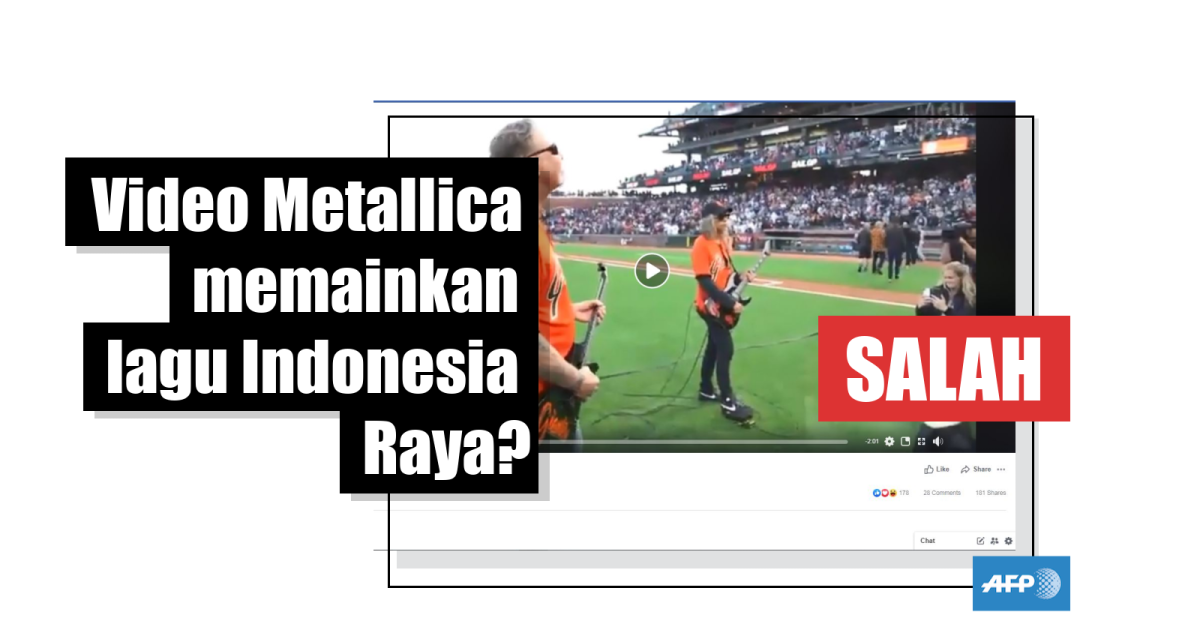 Status Facebook unggahan menyesatkan itu adalah: “Metallica~Indonesia Raya”.