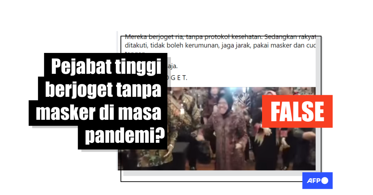 Keterangan video itu berbunyi, “Saat rakor Pemprov Jatim dan kepala daerah se-Jatim pada Jumat (31/1/2020) di Grand City, Wali Kota Surabaya Tri Rismaharini berjoget maumere dengan iringan nyanyian dari mendagri Tito Karnavian. Saat asyik berjoget, Menkopolhukam Mahfud MD melintas dan ikut berjoget meski sebentar.”